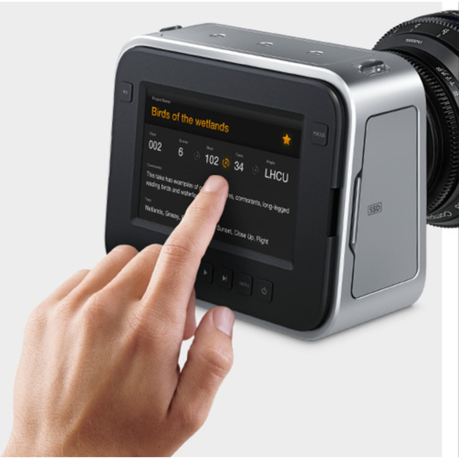 Камера с сенсором Super 35 и байонетом EF. Снимает CinemaDNG RAW и ProRes 422 в разрешении Ultra HD. Оснащена 6G-SDI выходом и сенсор экран