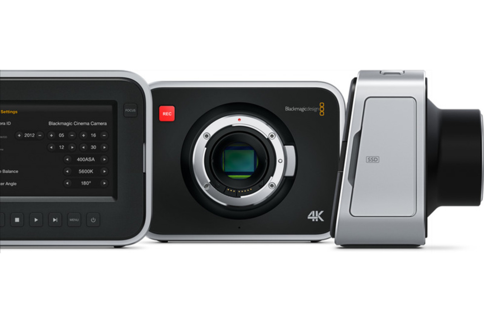 Blackmagic Production Camera 4K – это портативная кинокамера форматов Ultra HD TV и 4K, оборудованная широкоформатным сенсором Super 35, кадровым затвором и байонетом под сменную оптику EF. Новая модель может записывать в компрессированные файловые форматы CinemaDNG RAW и Apple ProRes 422 (HQ). Более того, вы сможете вести полноценный мониторинг съемки благодаря сенсорному дисплею, изменять при необходимости параметры и вводить метаданные прямо с камеры. Мощь 4K-разрешения Камера Blackmagic Camera 4K позволяет сохранять материал в компрессированном формате ProRes 422 (HQ) и CinemaDNG RAW. Последнему не свойственны визуальные потери. Оба формата сочетаются с различными системами монтажа и грейдинга. С Blackmagic Camera 4K вы сможете снимать клипы, рекламные ролики, телесериалы, документальные фильмы, спортивные программы, интервью и многое другое с потрясающим разрешением. Camera 4K оборудована выходом 6G-SDI, с которым станет возможно использование камеры для live-продакшн в формате Ultra HD. Стильный алюминиевый корпус, байонет EF для сменной оптики, сенсор Super 35 4K, кадровый затвор и запись в форматы CinemaDNG RAW и ProRes 422 (HQ) делают эту камеру девайсом, не поддающимся воображению. С этой камерой вам не придется синхронизировать записанный звук, такая возможность обеспечивается за счет того, что 4K встраивает некомпрессированные аудиоданные напрямую в ProRes-файлы.
