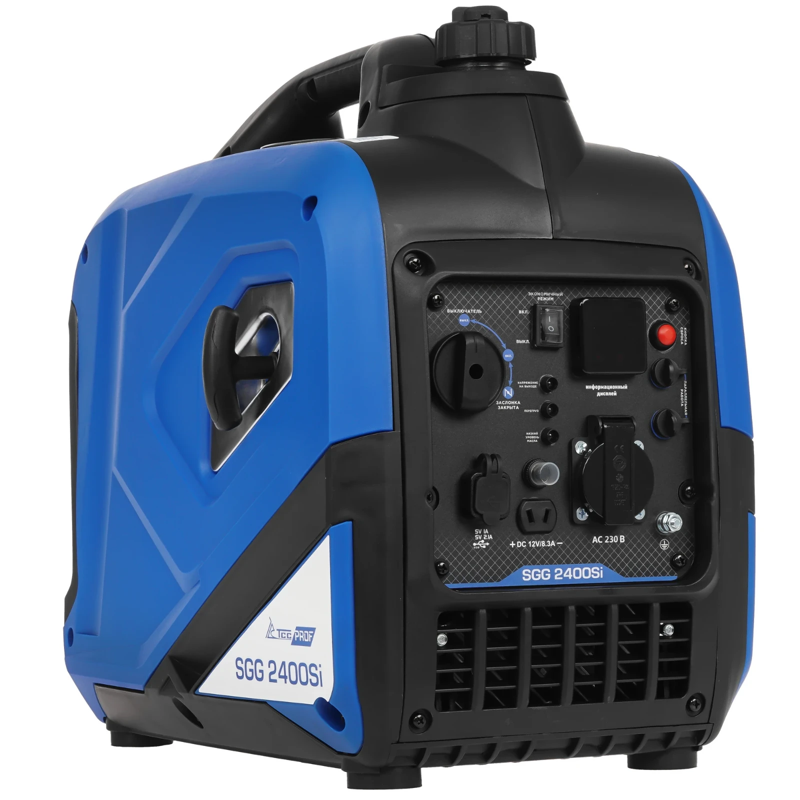 Электрогенератор ТСС SGG2400SI с четырехтактным двигателем – мощный и надежный источник энергии для использования в качестве резервного питания в домах, на строительных площадках, в офисах и других местах, где необходимо обеспечить непрерывное снабжение. Он имеет мощность 2 кВт, что позволяет обеспечить несколько бытовых приборов одновременно. Прибор работает достаточно тихо (до 60 дБ), что обеспечивает комфорт при использовании. ТСС SGG2400SI оснащен системой автоматического контроля уровня масла, предотвращающей перегрев при низком уровне масла. Защита от перегрузок и вольтметр служат на пользу безопасности применения прибора. Тип: инверторный Запуск: ручной Двигатель: 2.86 л.с. Топливо: бензин АИ-92 Бак: 5.6 л (на 5.6 ч работы)