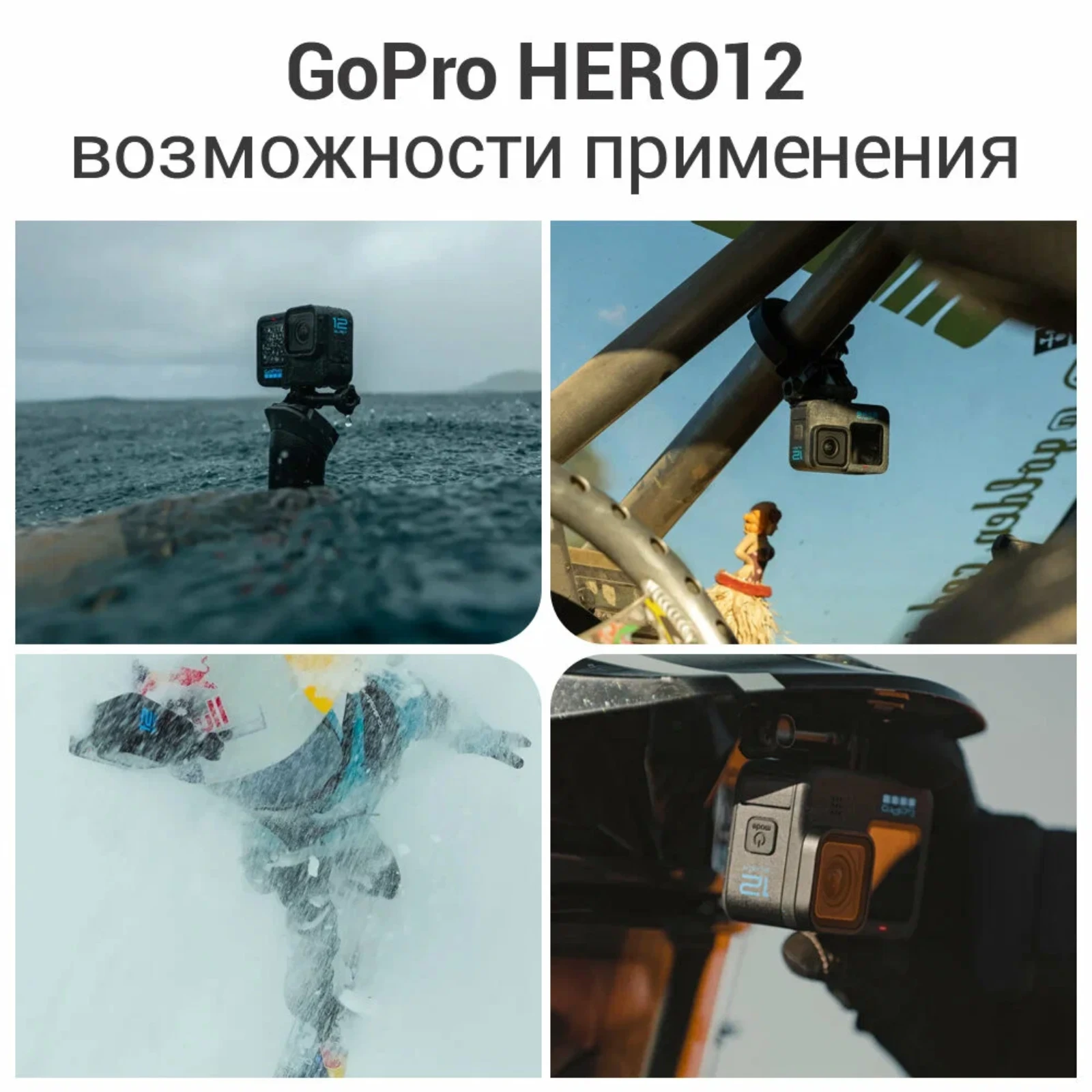 Экшн-камера GoPro HERO12 Black: высокое качество изображения и продолжительная съемка 27.6-мегапиксельная матрица: обеспечивает высокое качество изображения и детализацию. Аккумулятор емкостью 1720 мАч: обеспечивает до 2,5 часов непрерывной съемки, что позволяет снимать видео в течение длительного времени без необходимости частой подзарядки. Подключение по Bluetooth: позволяет легко и быстро передавать данные и управлять камерой, включая подключение устройств, таких как Apple AirPods. Улучшенная стабилизация видео HyperSmooth 6.0: автоматически обеспечивает максимально широкий угол обзора во время съемки, что особенно полезно при съемке динамичных сцен. Запись видео с расширенным динамическим диапазоном (HDR): обеспечивает высокий уровень детализации и улучшает отображение цветов в светлых участках кадра. Сенсорный дисплей: позволяет легко и интуитивно управлять всеми функциями камеры. Поддержка внешних носителей формата micro SD: позволяет хранить большое количество видео и фото. В комплект камеры входят изогнутая клеящаяся платформа, крепёжный винт, крепление-защелка и кабель USB-C. Класс защиты IP68: делает камеру устойчивой к пыли и влаге. В общем, экшн-камера GoPro HERO12 Black - это надежный и функциональный инструмент для съемки видео в любых условиях.