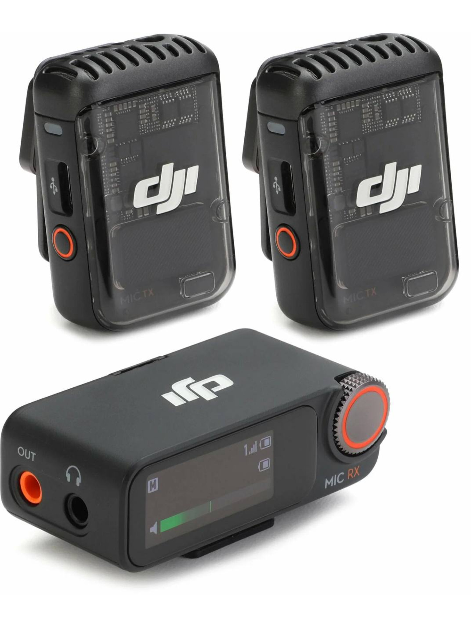 Профессиональная радиосистема DJI Mic 2: • Всенаправленный микрофон, 48 кГц / 32-bit float запись • 8 ГБ памяти (14 ч) и интеллектуальное шумоподавление • 6 ч работы (18 ч с кейсом), дальность 250 м (FCC) • Вес 28 г, сенсорный OLED, магнитный зажим • Выходы USB-C, Lightning, TRS 3.5 мм