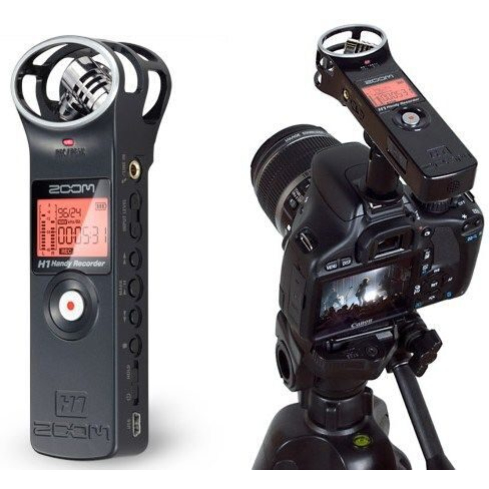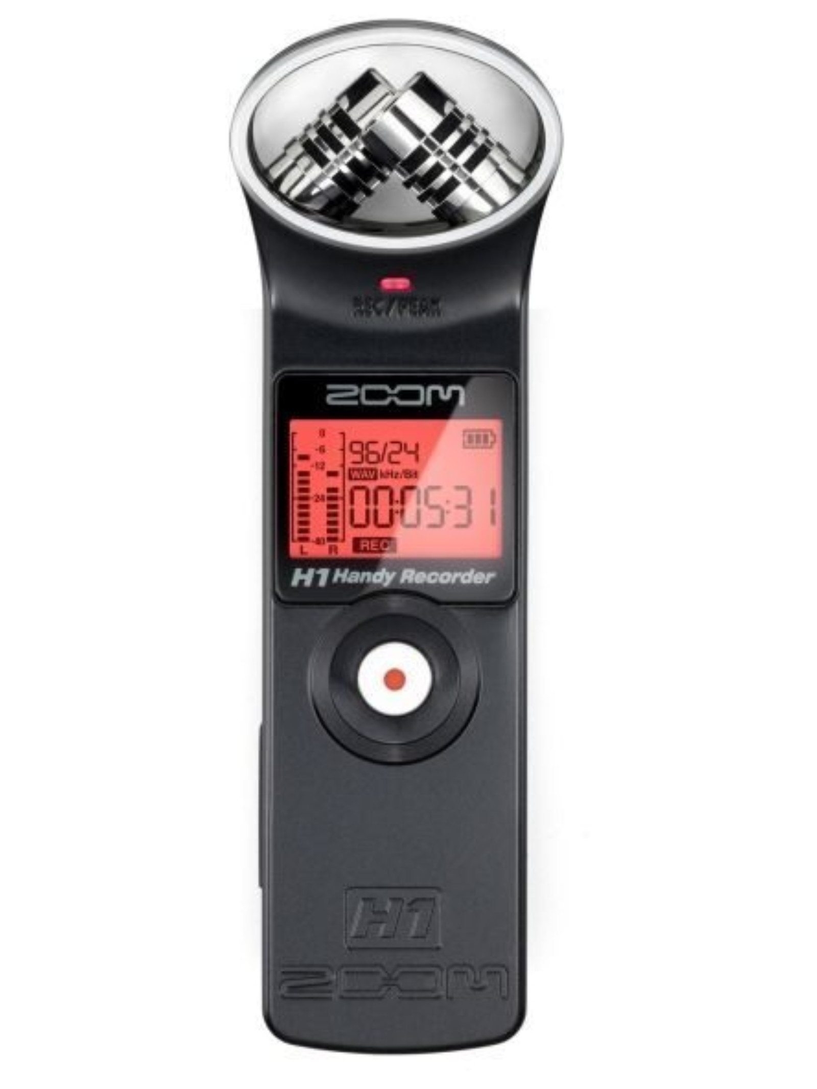Легкий и ультракомпактный Встроенный стереомикрофон X/Y на 90 градусов. Записывает непосредственно на карты microSD и microSDHC объемом до 32 ГБ. Поддерживает звук WAV до 24 бит/96 кГц, а также различные форматы MP3. Стереофонический микрофон/линейный входной разъем с подключаемым питанием Мониторинг динамиков и стереотелефонов/линейный выходный разъем со специальной регулировкой громкости Требуется всего лишь одна щелочная или NiMH аккумуляторная батарея типа АА Zoom H1 получает стерео отображение из микрофонов, находящихся на панели диктофона, которые конфигурируются в X / Y картинки. Благодаря тому, что оба микрофона расположены на одной оси, они находятся на равном расстоянии от источника звука для идеальной локализации и отсутствия сдвига фаз, в результате чего получается отличная стерео запись с естественной глубиной и точным отображением. Этот удобный диктофон содержит все свои функции на панели, поэтому вам не придется прокручивать меню в поисках какой-либо опции. Его дисплей с подсветкой отображает уровень записи, формат файла, прошедшее время, оставшийся заряд батареи и время записи. Все основные элементы управления расположены на боковой стороне - большая кнопка записи, воспроизведение и пауза, маркер, перемотка вперед и назад, громкость и т.д. На задней панели устройства имеется одно отделение для батареи формата AA, треногий штатив, НЧ фильтр, автоматическая настройка уровня, переключатель формата записи